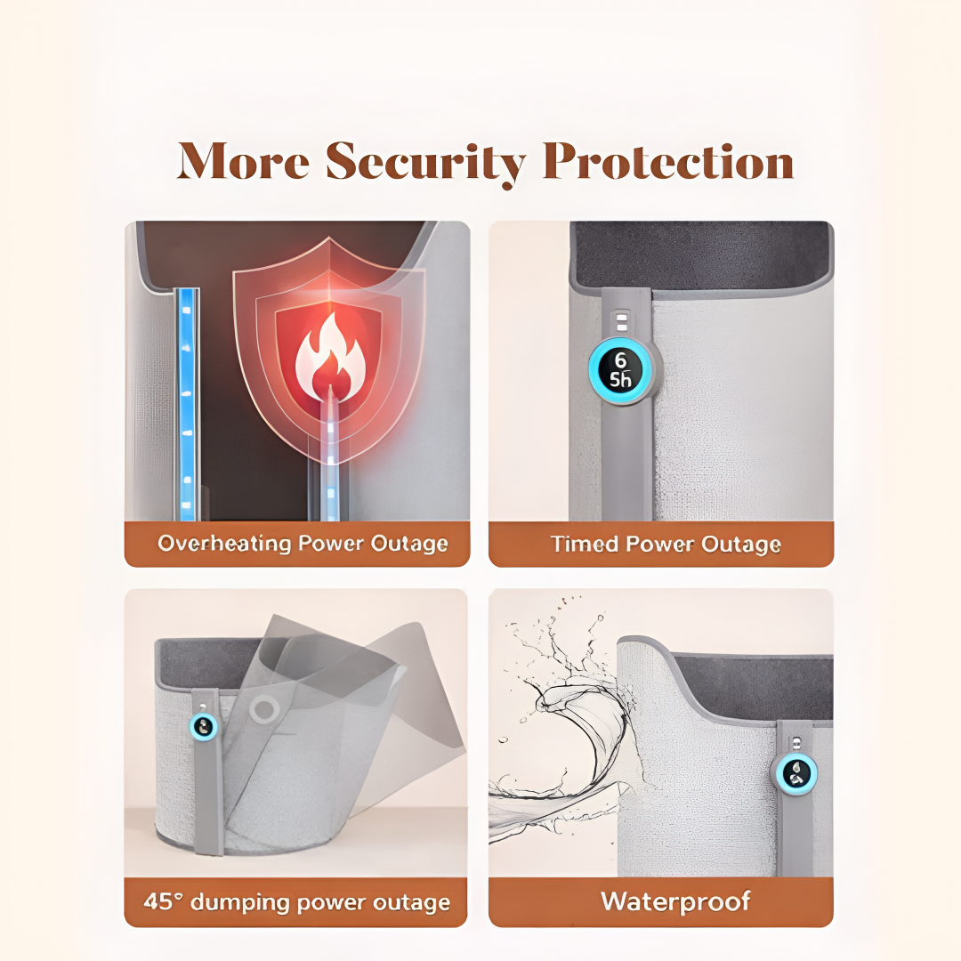 Reart™ Leg Warmer uses low-voltage heating elements to gently surround your legs with consistent, evenly distributed warmth. Just plug it in, choose your heat and timer setting, and relax while it keeps you warm without overheating.